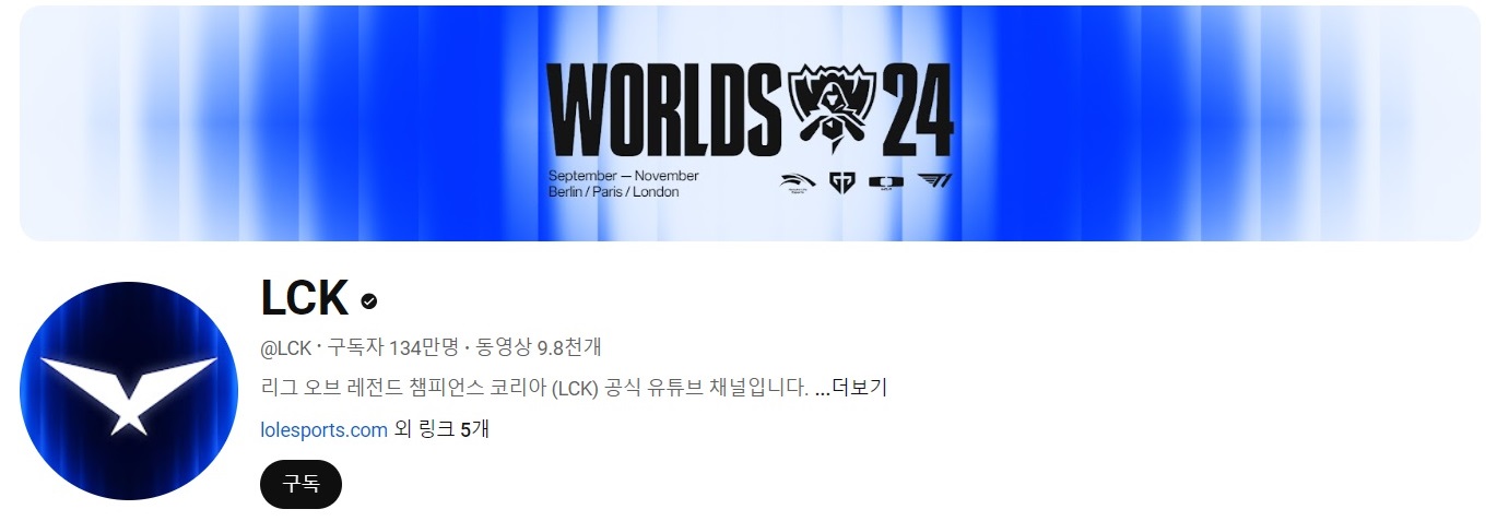 광고가 좀 많긴 하지만 유튜브로 간편하게 LCK 공식 유튜브 채널에서도 함께 할 수 있습니다.