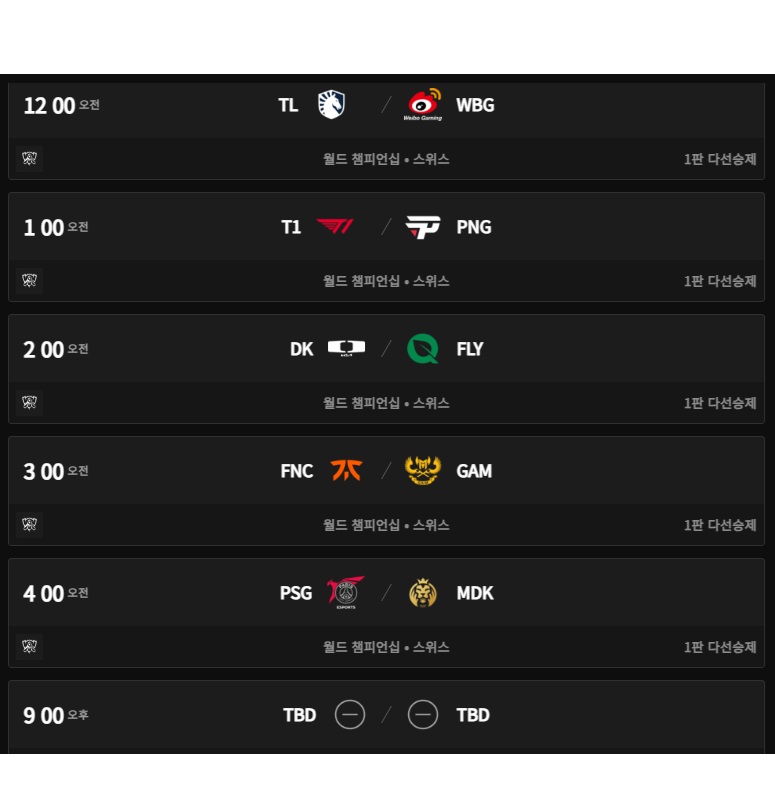 10월 3일부터 시작된 스위스 스테이지에서 현재까지 우승한 팀은 아래와 같습니다.