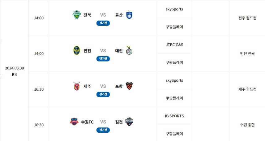 3월 초부터 시작된 2024 K리그의 순위 및 일정, K리그 중계 보기, 관람 티켓 할인받기에 대해 자세히 안내하겠습니다.